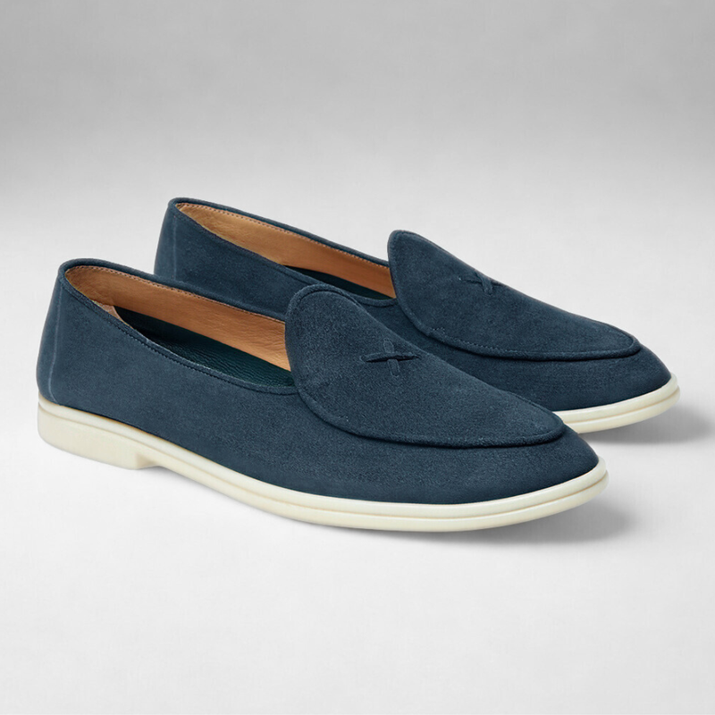 The open-back design puts a spotlight on the material quality and interior design.Italian Suede: Soft, unlined options in colors like Navy and Grey offer immediate comfort and breathability—ideal for wearing sockless.Calfskin Leather: Our full-grain leather options provide a sleek, polished look that pairs well with linens and summer tailoring.Breathable Fit: The interior is finished to ensure the shoe feels soft and comfortable against bare skin, a crucial feature for a warm-weather slip-on.