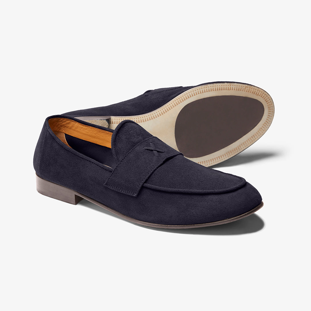 Handmade Italian Navy Suede Centesimo | Men's Stylish Penny Loafers