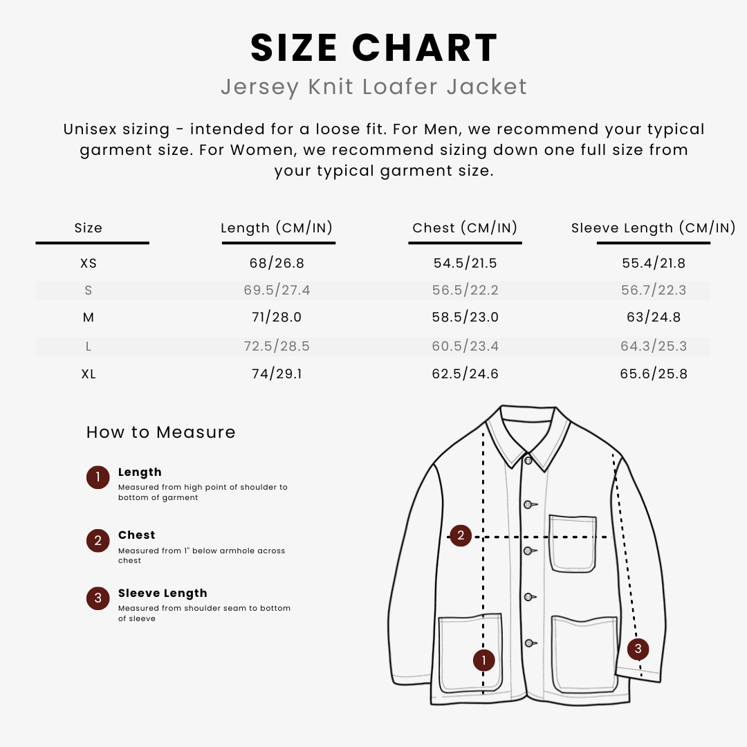 Inspired by vintage Italian-design, our Jersey Knit Chore Coat is the definition of comfort meeting function. Designed for a loose, deconstructed fit, it is intended to be worn casually. Pair it with sweats, jeans, or chinos, toss on a tee, and you're ready to go. Featuring two side pockets and a left chest pocket, it's about as functional as it gets. Designed for both Men & Women.
